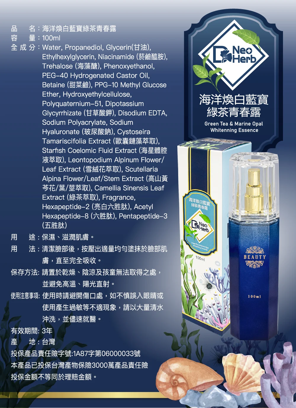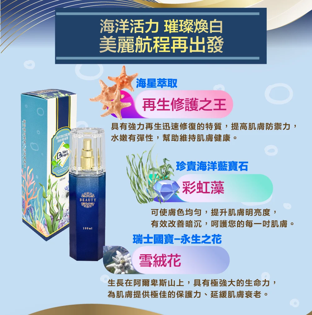 【紐歐博】海洋煥白藍寶綠茶青春露(100ml/瓶)